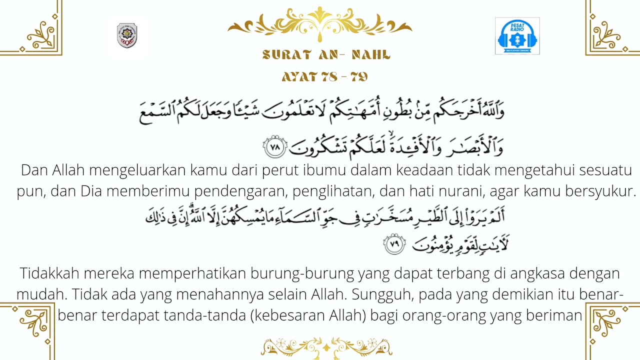 Surah An Nahl Ayat 78 : Have they not seen the birds tied to order in the firmament of the heaven, none hold them save allah?. Have they not seen the birds tied to order in the firmament of the heaven, none hold them save allah? Pada ayat ini, allah swt. (for further explanation, see e.n. He will not at all be conscious that he has been resurrected after thousands of years. Daura e tarjuma e quran | surah nahl | surah bani israel | segment 2 | 9th may 2020 | ary qtv.